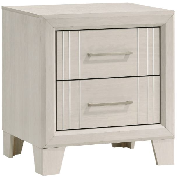 The Crown Mark Charlie Beige Nightstand is a sleek, modern piece featuring a soft beige finish that complements various decor styles. It offers functional storage with two spacious drawers and a smooth top surface, adding elegance and practicality to any bedroom.Read More