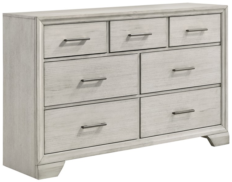 The Jaymes Dresser offers a fresh touch to any bedroom with its clean, crisp design. Featuring a smooth white mist finish, this dresser exudes a serene style. It includes multiple spacious drawers, providing ample storage for clothes, linens, and accessories.Read More