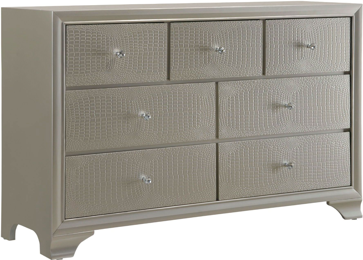 Step into a realm of sophistication and comfort with this stunning Lyssa dresser. This piece showcases an exquisite blend of traditional charm and contemporary flair, making a bold statement with its textured surfaces and elegant champagne finish.Read More