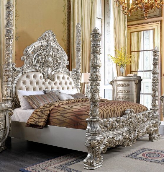 Complete your bedroom idea with this bed from Homey Design. Shown in a silver finish, this bed features a wooden frame and leather upholstery. This piece will definitely add style to your bedroom.Read More